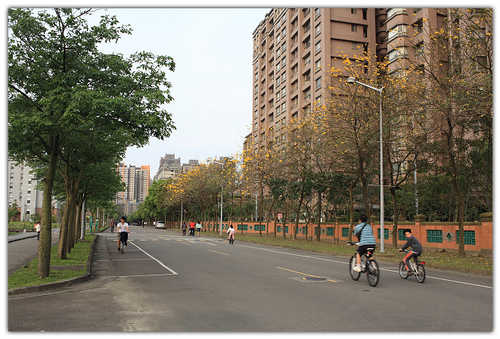 台北大學的黃花風鈴木盛開中。