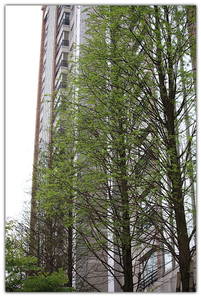大義路上的落羽松長出新芽了。