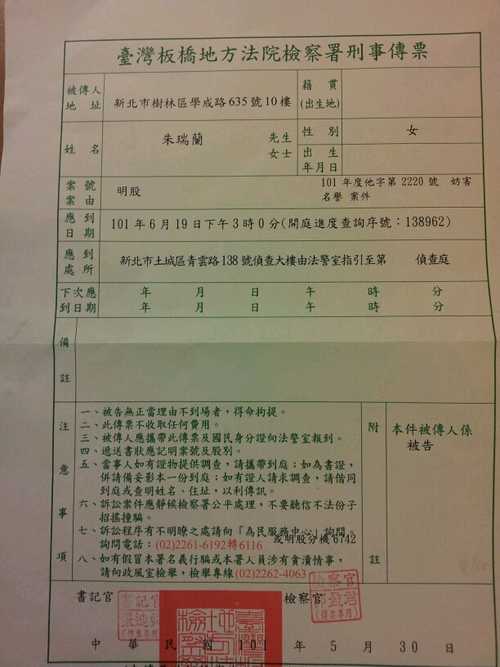 小徐 發表於 2012-4-29 18:43 牠等不及三月判決二月份就去地檢署按鈴申告 告族長跟我公然侮辱牠吧!然後告僑樂的那個王君平經理妨礙祕 ...