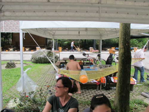 誰要穿著車衣車褲去烤肉呀!>"<
