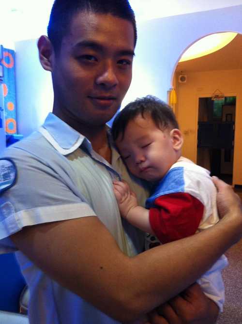 看看以下這照片就知道啦~~~和帥哥老闆素昧平生的小鬼頭居然居然就這麼乖乖