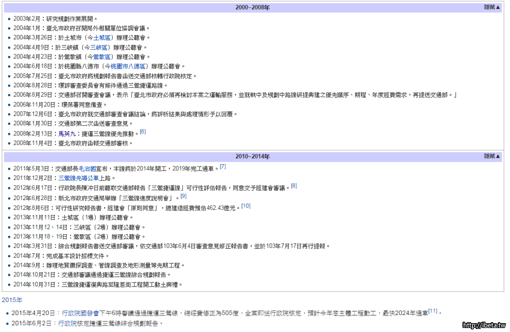 1. 2005年台北市政府就將計劃書送行政院核定但行政院一直到2015年才核定.