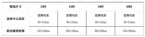所以正確的安裝高度需貼心的考量家中的成員的觀賞資勢(坐姿習慣、坐姿身高、沙發或床鋪高度)!