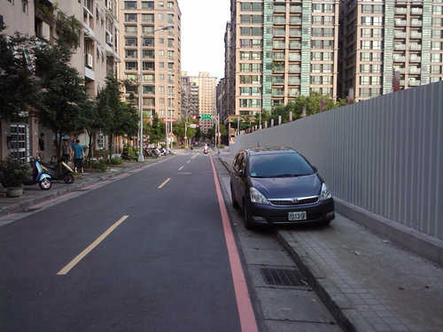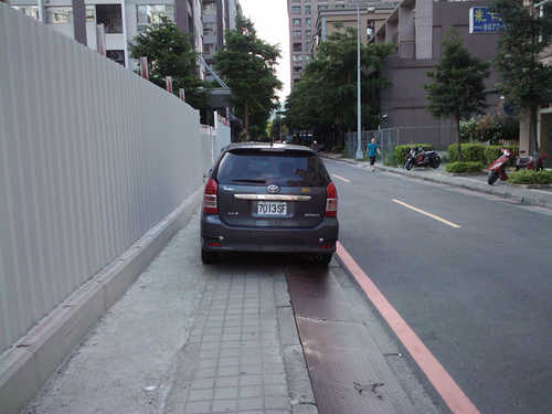 人行道,真的應該好好好設計一下了,利用些技巧性的景觀設計,來阻止車輛開上來停放......