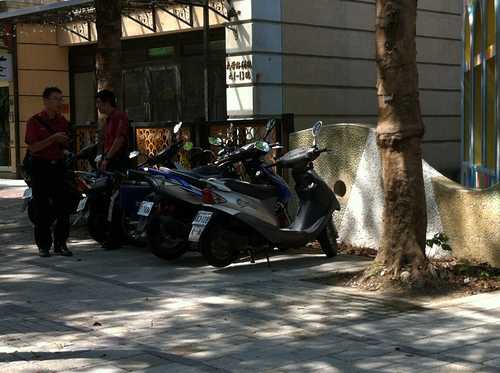 昨天晚上,七點多,同樣的大觀路,同樣的人行道,上面停了兩輛汽車,再加上紅線的違規停車,我觀察了一下之後,馬上又打了110處理,過了20分中,一位員警慢慢的騎著機車前來,首先,先慢慢的繞行大觀路一周(是怎樣? 您以為您是運送奧運聖火進場嗎? 還來個環場一周,很明顯的是要讓那紅藍閃燈,閃呀閃的,讓車主知道,警察來了,看看會不會自己把車移走),很遺憾的,繞了一圈後,所有的違規停車完全不鳥他,所以他老兄就再準備進行利二次的"繞場"動作,這次還會在店家門口,鳴笛個幾聲,這下這兩個停在人行道上的車主,看到好像"真的"不移不行了,就走了出來,準備要開車(但是停在紅線上的那些車輛,車主則是從頭到尾都沒出現過,但是該名員警好像完全的忽視紅線停車這檔事,更別說違規停放的機車了......),看到車主似乎有移車的準備時,這員警就準備"退場了",其中一輛車,繞了一圈,兩分鐘後,又停回人行道上相同的位置,而後續又有其他"新的"車輛,停上人行道,而陸續也增加了紅線違停,真的看的十分火大,看到許多 家長 推著嬰兒車,走在人行道上,但是卻不得不在這幾輛違停車輛前,被迫冒險走到馬路上,繞過這些車輛,當下真的覺得,難道大家都這麼的"相願"嗎? 此時我又拿起了電話,打了通110,十分不悅的告訴員警,叫他馬上通知三峽分局,給我馬上處理!! 對於這些員警的處理態度,我十分的火大!! 寄給市長信箱的信,回信也都是相當的"制式",毫無誠意!! 我想應該恢復以前員警對於取締違規的"業績"壓力了,否則,多一事不如少一事的心態,真是 "助紂為聶" 。