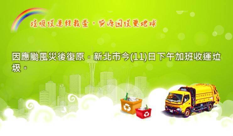 清潔隊通告:因應颱風災後復原,清潔隊今(11)日下午加班收運垃圾。《龍學里里長周秀鳳暨全體鄰長關心您》