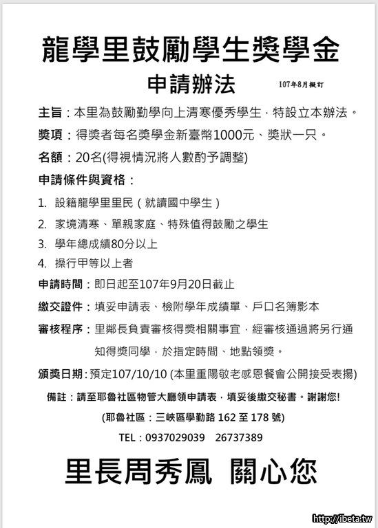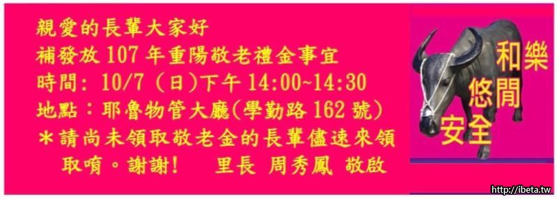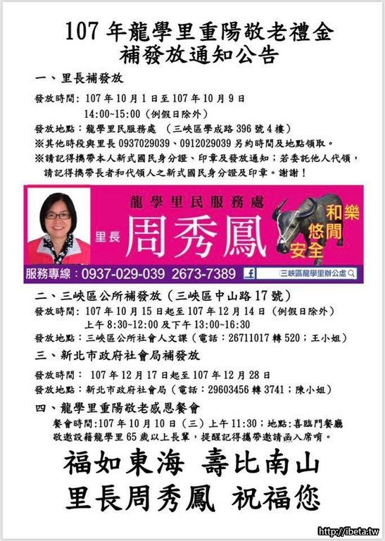 107年龍學里重陽敬老禮金補發放通知 ...