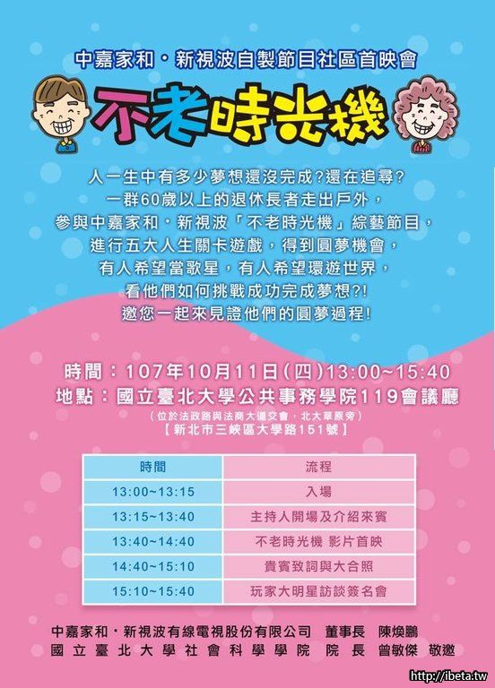 不老時光機影片首映,10/11下午、台北大學公共事務學院119會議廳,歡迎銀髮族長輩踴躍來參加唷。《龍學里 ...