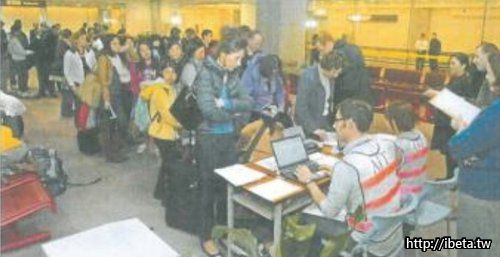 照片中,是美國 AIT 派美國人直接在桃園機場設海關,讓從日本撤回之美僑,