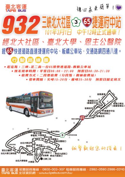 今天,932 北大到板橋通車了。