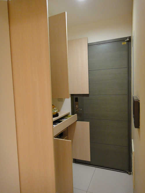 warren6648 發表於 2011-2-8 23:32 Warren_F1棟30坪2房(簡約風)裝璜分享 原始圖和裝潢圖的比較 1.玄關大門