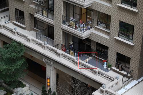 另外一件事,關於已有住戶違規使用二樓露台(當作狗狗的運動空間),今天意外拍到照片,Post上來給大家參考.