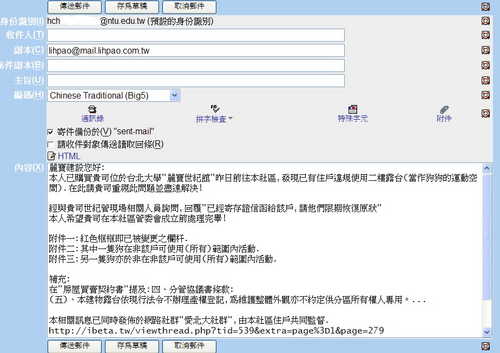 我想 如果目前在線上的住戶(在愛北大的世紀館住戶) 可以一人一信