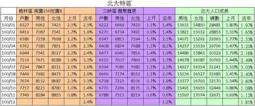 北大特區的屬性跟永和區、大安區、蘆洲區較為相近。