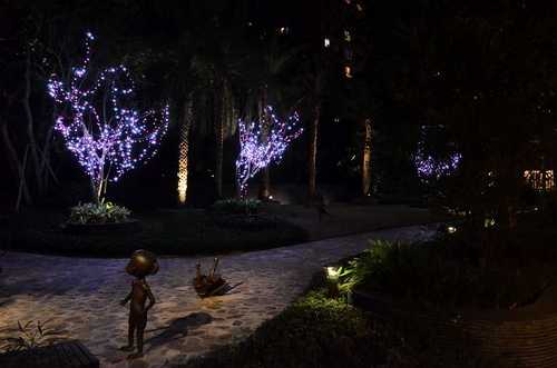 可否請物管將中庭及大門前樹上的霓虹燈拆除?