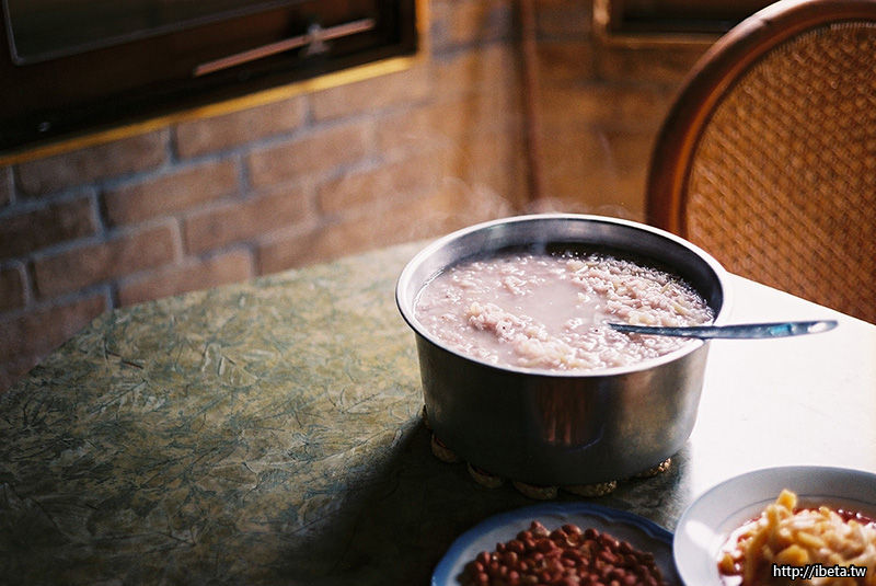 桌上的稀飯,紅豆和白米都是台灣運過來的,