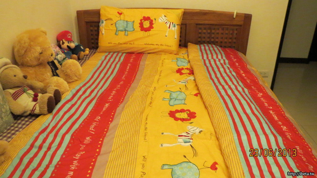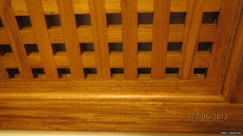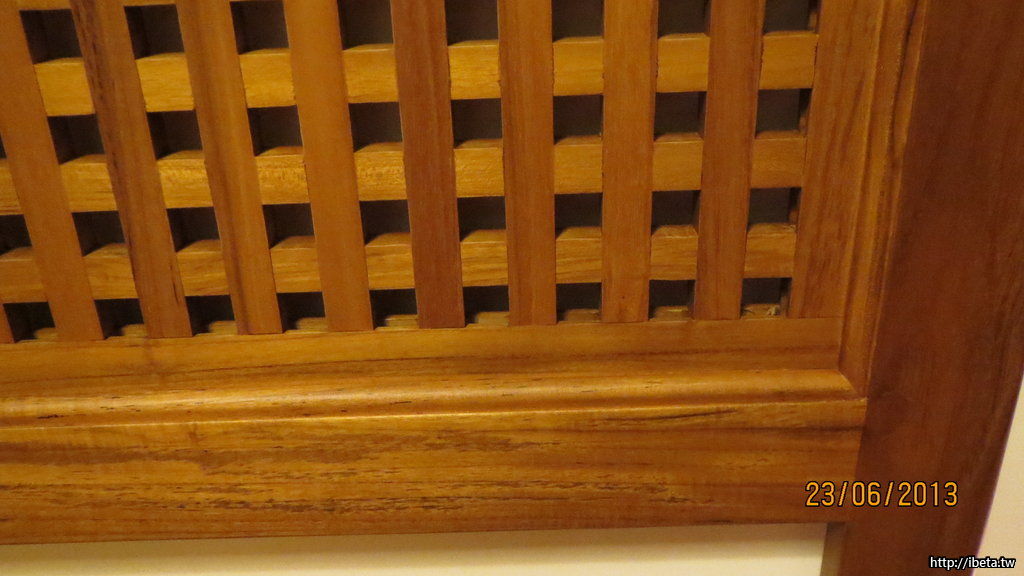 圖為先前已經購買的雙人柚木格子床