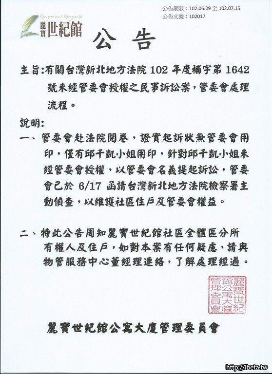 公告是住戶知的權利,物管自當維護