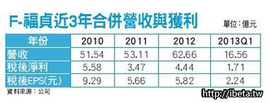 法人指出,F-福貞第一季稅後淨利1.71億元,稅後EPS 2.24元,四、五月營收年成長率紛近一倍來看,保守估其全年EPS若以期初股本7.63億計,有機會挑戰十元,儘管期末股本因派發3.15元股票,將達十億元,仍有八元,本益比僅十二倍,因其產業成長趨勢確立,給予本益比十五倍,股價上看120元。