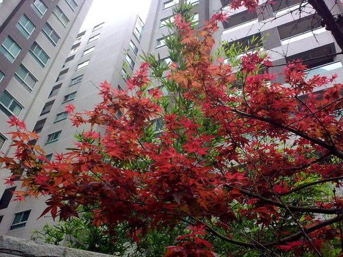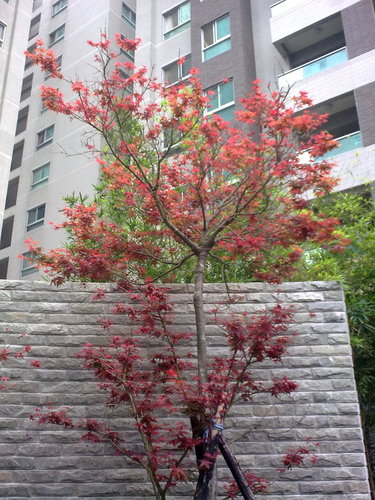 看看 中庭花圃上 不同的花草 在地上努力向前進的蝸牛