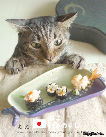 來看看ㄤㄤ怎麼一口吃掉壽司唄~~