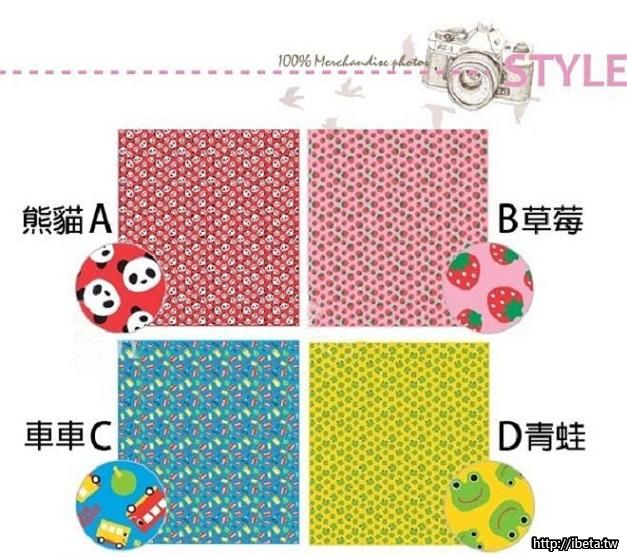 款式 : A熊貓 / B草莓 / C藍車車 / D青蛙 / E動物園 / F宇宙-守航員 / G公主