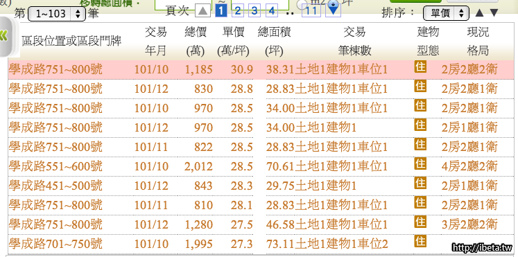 聿榛爸 發表於 2013-7-21 09:22 以最後一筆, 102/3, 成交單價28.1這筆來算, 先扣車位坪數再除, 其實單價是約30.4, not 28.1 ...
