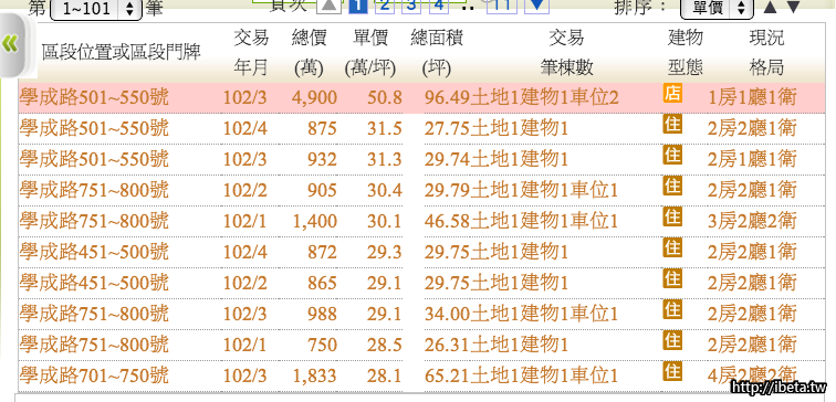 Predator 發表於 2013-7-29 14:36 102年成交資訊總整理~依時間排序~ 紅線部分為心六藝物件~成交單價自1月起分別為: