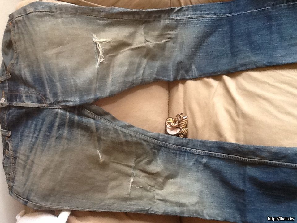 4.Levis 532 排扣刷舊破損牛仔褲 size34 W34 L34 ;注意〜臀部、大腿邊緣也有破損。便宜賣600。