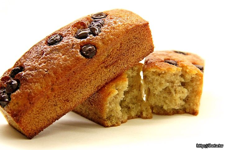 香蕉的香氣及蛋糕體綿密的口感中~夾雜著水滴巧克力豆的微苦香甜~