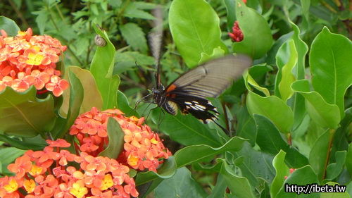 2見識到蘇力颱風威力,神仙谷之遊被迫折返,意外中發現大坪國小精心培育的蝴蝶生態區校園景點,正值蝴蝶盛產期,群飛共舞蔚為奇觀