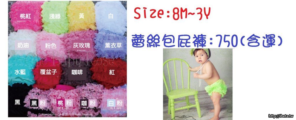 Chic Baby Rose 蕾絲包屁褲 團購價錢為750含運價 (小孩款)
