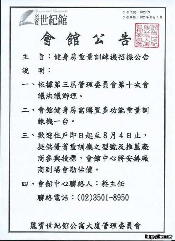公告102039健身房重量訓練機招標公告