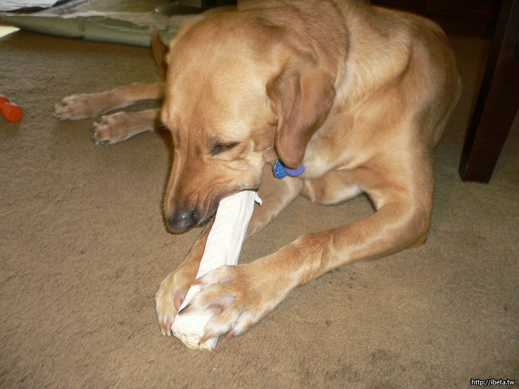 後來, 牠喜歡牛筋骨, 半小時就解決一根