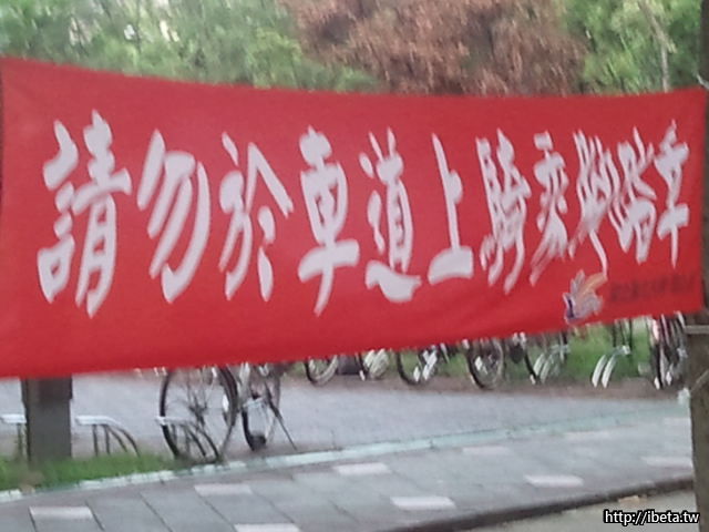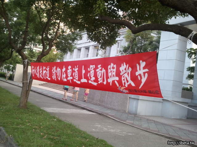 我想應該是很多人喜愛走在車道上運動 造成大學裡的困擾 所以才會有此宣導吧