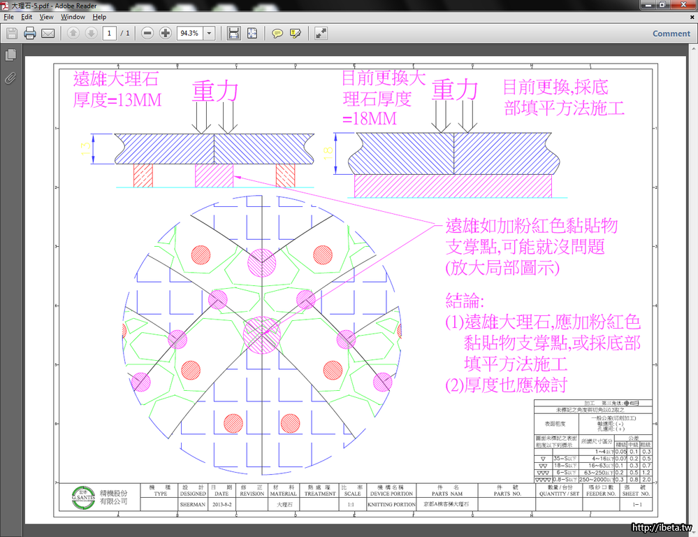 而這種大理石鋪設也有很多施工法,不是你認為就是只有一種!有硬底,軟體,黏著....等施工法----光你們自以為的判斷! 如何又說,建商就是施工錯誤? 不論哪一種,沒有所謂的施力不足就斷裂的問題! 除無非石頭本身就有無法承載的問題!