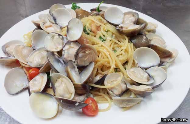 看到上面的圖片(白酒蛤蠣義大利麵)跟我前幾天去吃的份量有差距,圖片較為大份且蛤蠣超過了9顆,當天則是用橢圓盤裝。