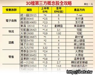 其次,除了電子商務服務商有實質受惠外,對於衍生而出的商機更是龐大,包括:建制龐大雲端資料系統、運輸物流業者、4G網通及NFC行動支付等等,這些後續衍生商機都值得投資人持續追蹤留意。