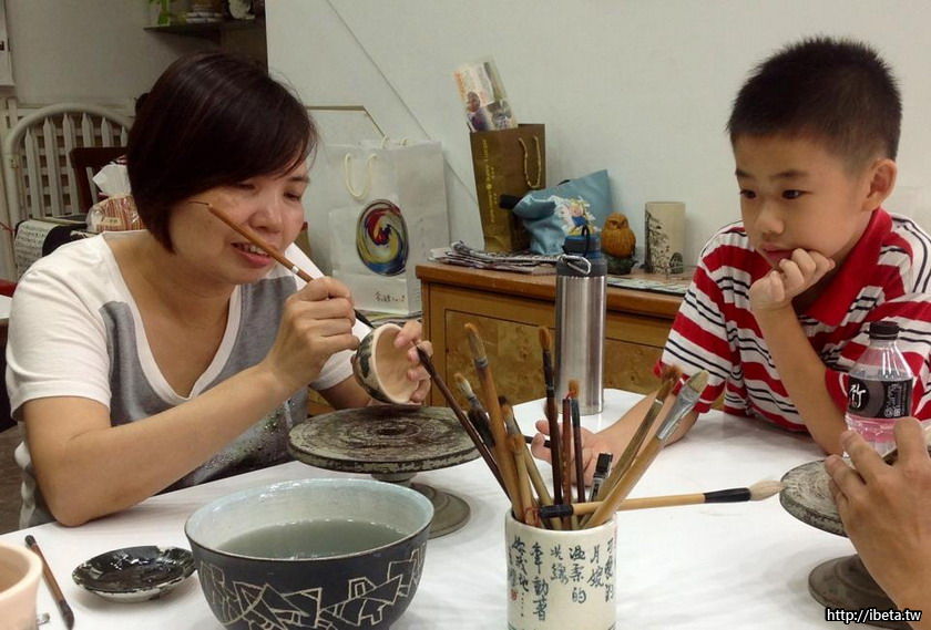 陶之旅...8/09素坏浸水-淋釉-烘乾-繪刻+春暉/苗埔
