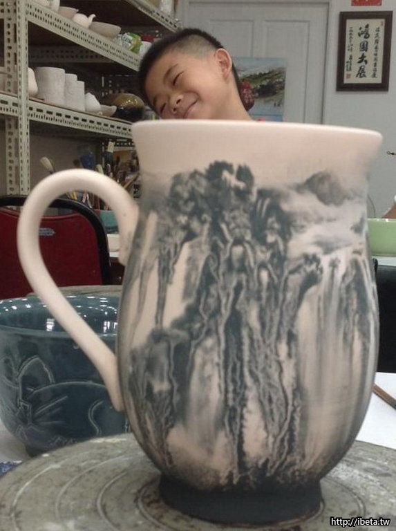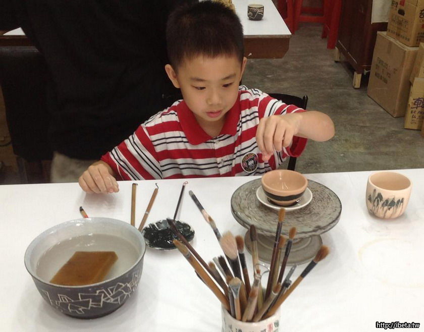 玩陶..素坏浸水-淋釉-烘乾-繪刻