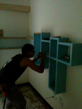 進度快是因為木作跟系統櫃混搭,所以時間上縮短蠻多的!