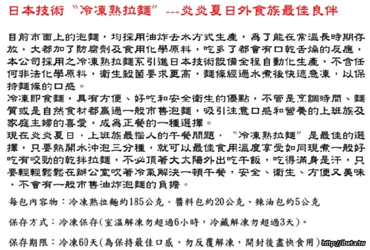 成 份:冷凍拉麵、醬包