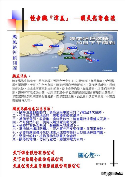 聽說這次颱風的雨比風大, 看起來又要擔心淹水的問題了.............