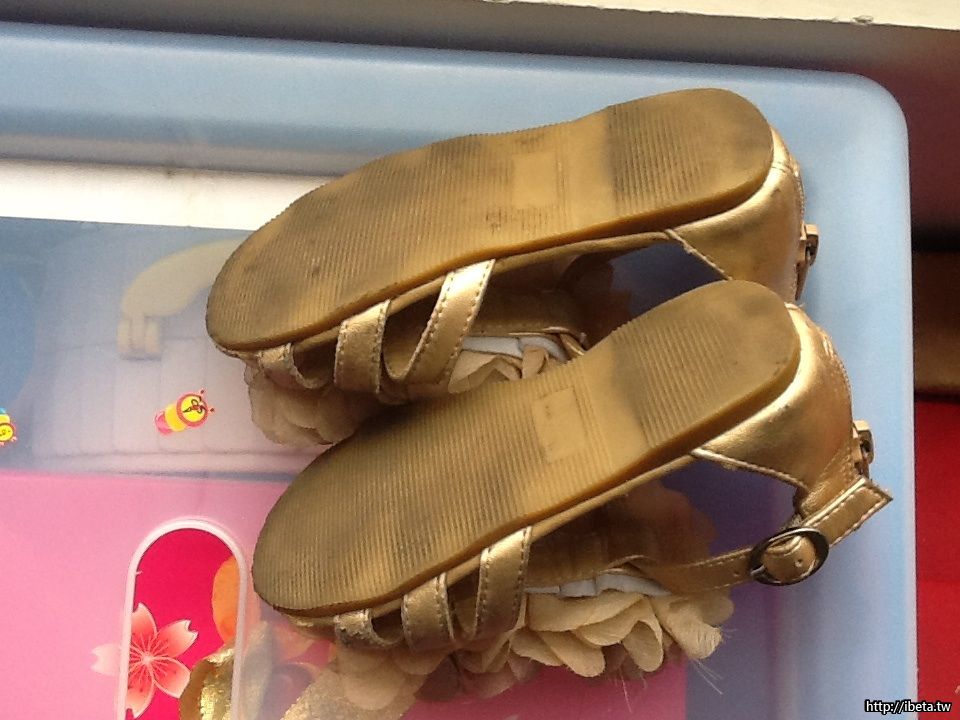 韓國 女童 淺金色立體花朵涼鞋 15cm 售150