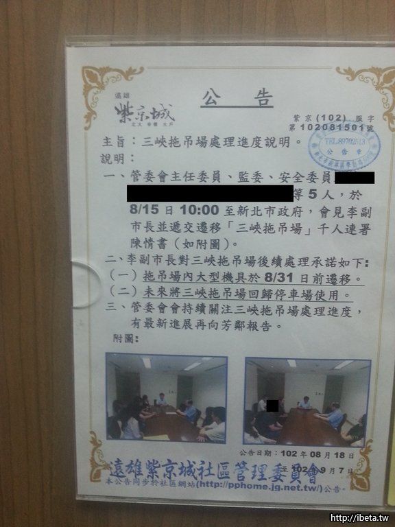 前陣子沸沸騰騰的議題,停二用地三峽拖吊場回歸停車場使用,請問有何進度了嗎? 社區公告看到8/31大型機具將移除,但昨日路過發現,還是沒有任何的變化~知道詳情的鄰居們請幫我解惑也!! 謝謝!!