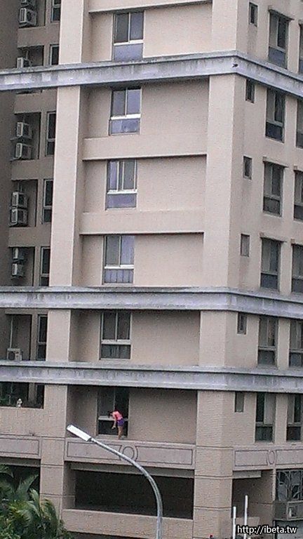 爬到屋外擦窗戶外面完全沒護欄,太危險了啦{:4_93:}