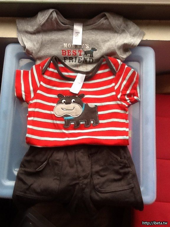 2。Carter's 男童短袖套裝三件組 (18M) 灰色包屁衣+短袖上衣+短褲 -- 150元
