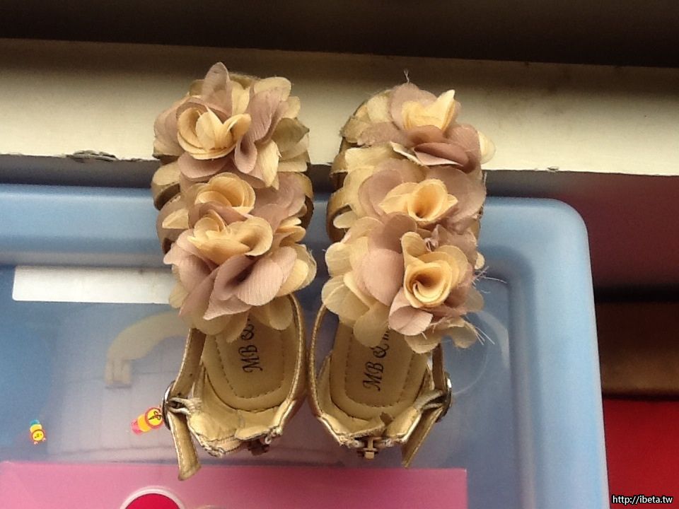 3。韓國女童花朵涼鞋(淺金色)15 --100元 鞋頭有磨損