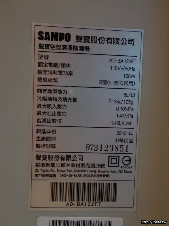 SAMPO聲寶 除濕機 AD-BA122FT九成新 2013年出廠