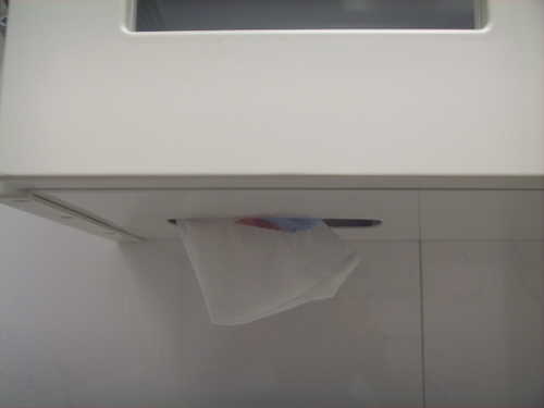 這個是安裝完後的情況,什麼呀!那麼麻煩!{:4_214:} 拿衛生紙還要開櫃子哦!...{:4_128:} 不不不 ... 再注意看一下